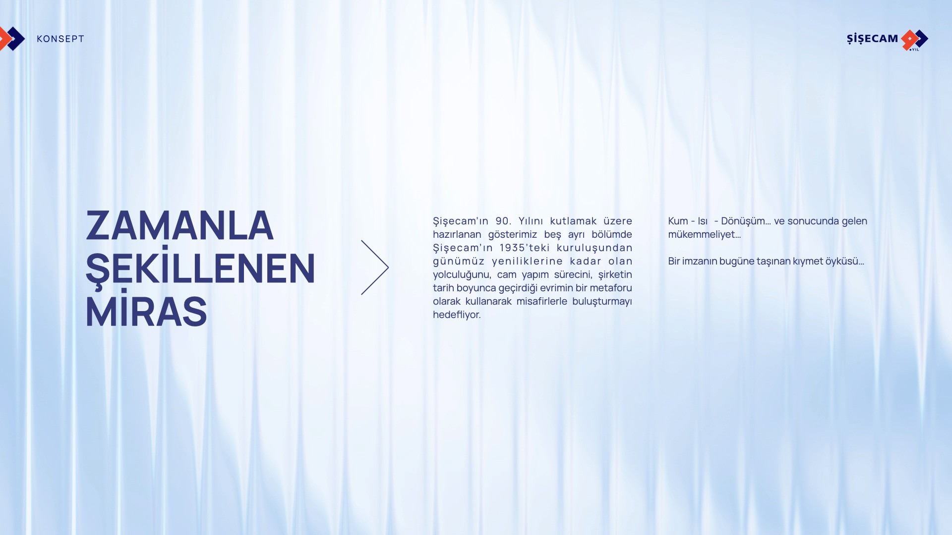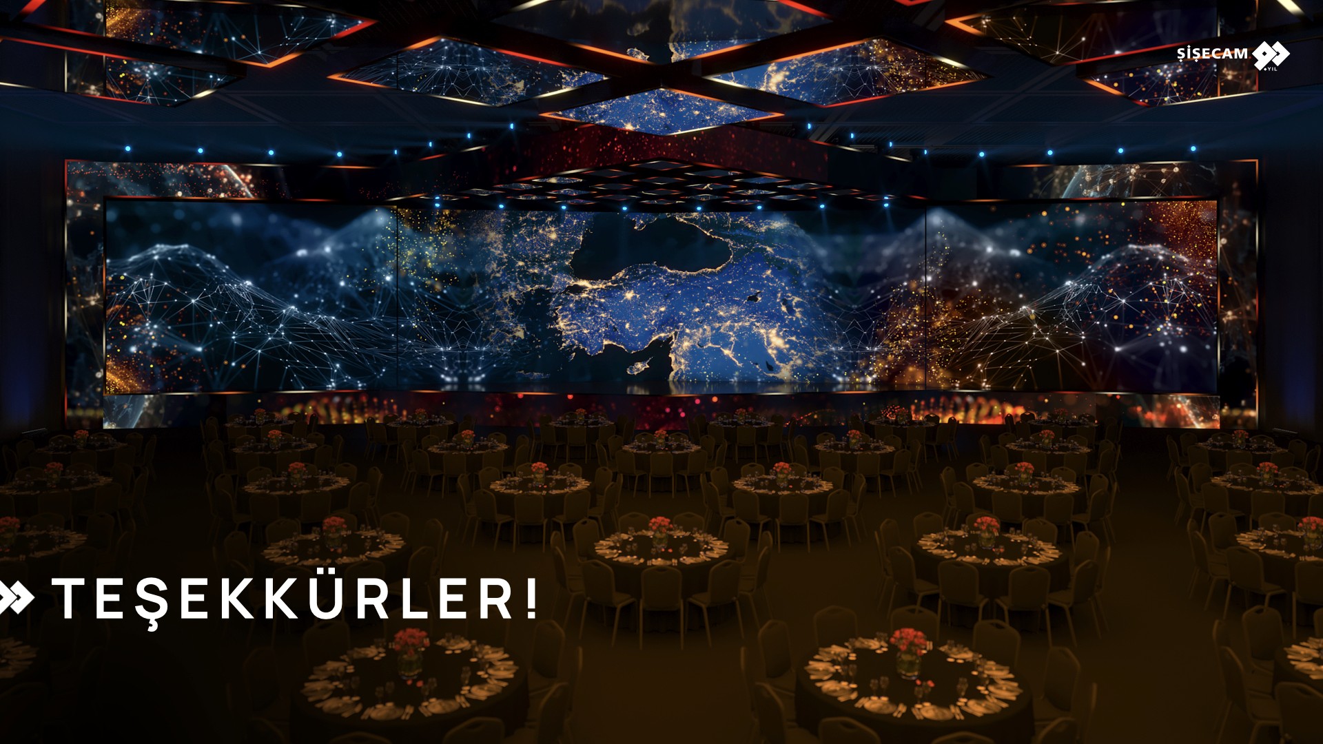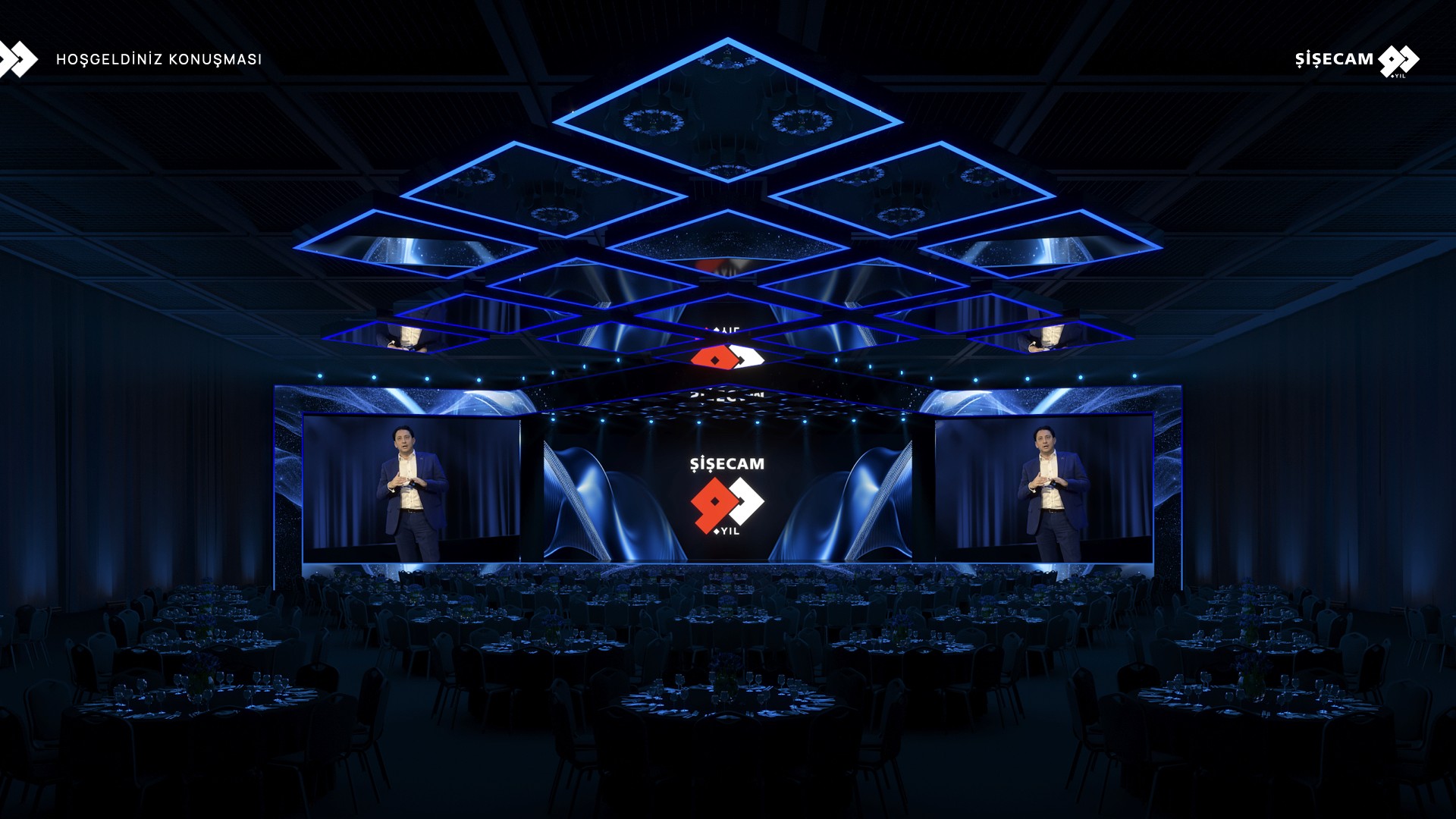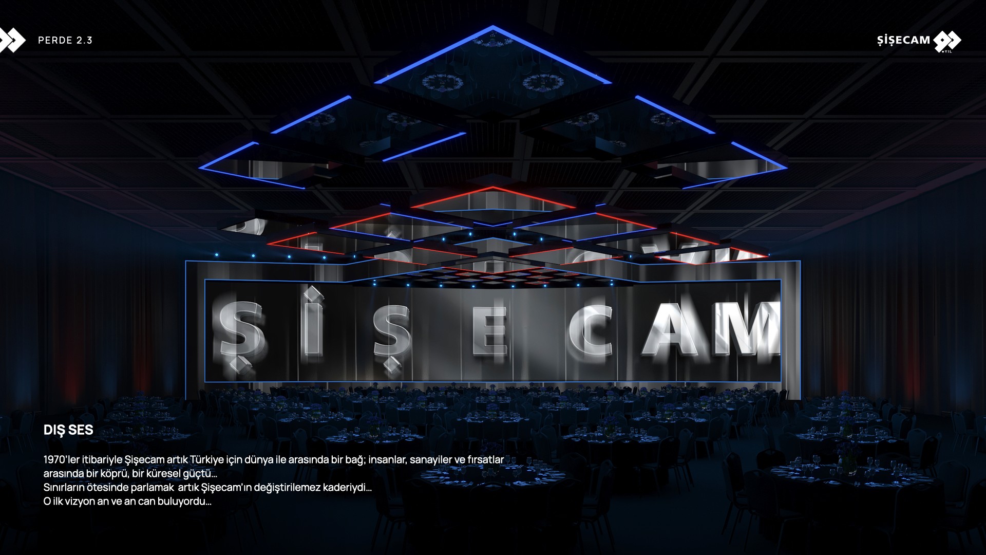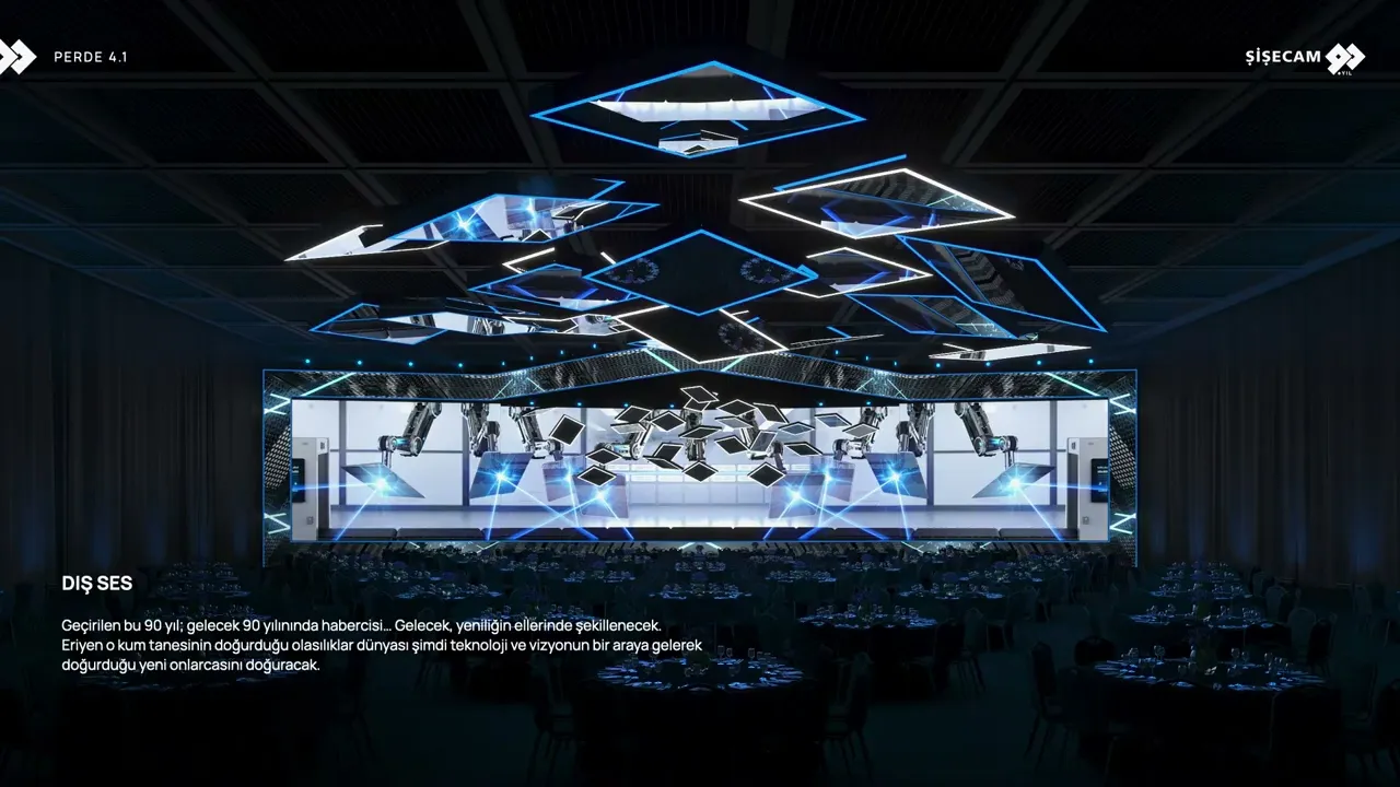 Concept presentation for Şişecam’s 90th anniversary gala, featuring an immersive stage design